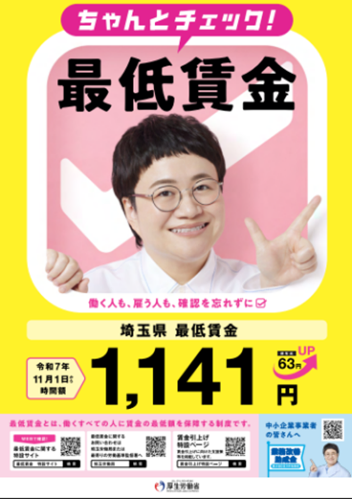 11月に改訂された埼玉県最低賃金の改正に続き、